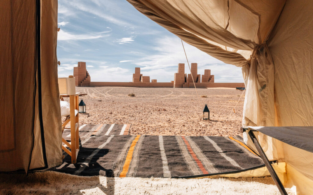 The resulting immersive journey begins in Marrakech with a private dinner with experts while allowing for relaxing downtime and local visits. A private plane then takes travellers down to desert with a picnic and visit to a little known desert oasis town on the way where visitors can experience the traditional Berber ways of life and rammed earth building technique they will see at the Marha Triangle. A night in the desert in a private camp specially created for the clients is followed by the full Marha triangle experience, complete with celestial inspired cocktails and dinners, visits to the structures, storytelling, astronomy and time to star bathe and reflect, inspired by this magical place.